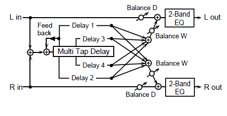 マルチ・タップ・ディレイのディレイ・タイムをさらに長く設定(max.3000ms)できるようにしたものです。