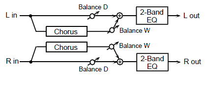 ステレオ仕様のコーラスです。フィルターを使ってコーラス音の音質を調節できます。