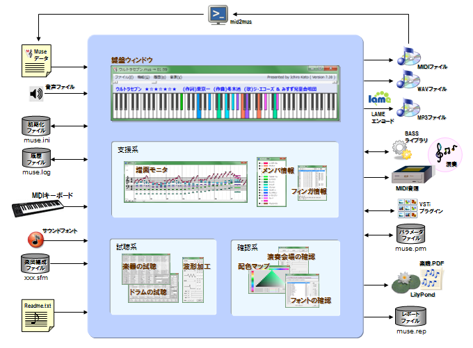 ※ 開発後記や加藤一郎氏の Muse の記事,MuseWorldのWHAT'S NEWなどを参考に再構成したものである。