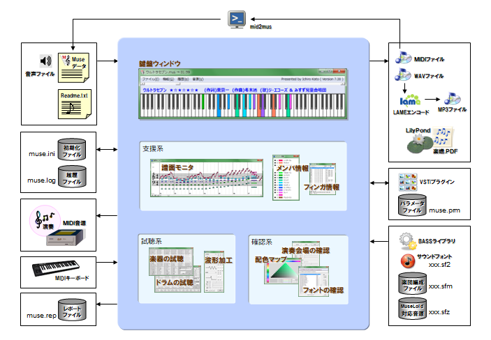 ※ 開発後記や加藤一郎氏の Muse の記事,MuseWorldのWHAT'S NEWなどを参考に再構成したものである。